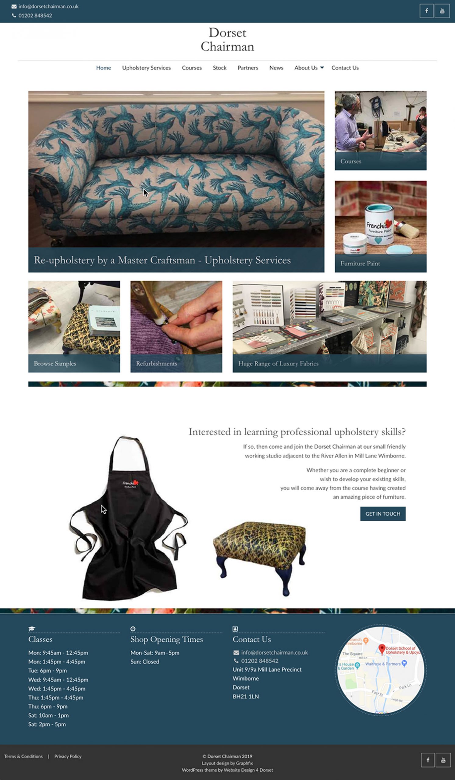 Graphfix still does freelance graphic and website layout design for Website Design 4 Dorset. Dorset Chairman based in Wimborne approached Website Design 4 Dorset to have their website redesigned and made updateable and responsive. Graphfix produced the following layout design after visiting the customer at their Wimborne based shop, studio and workshop. The client was over the moon with the layout design as I took into consideration the latest styles in the fabric industry and took this into consideration when producing the website layout design.