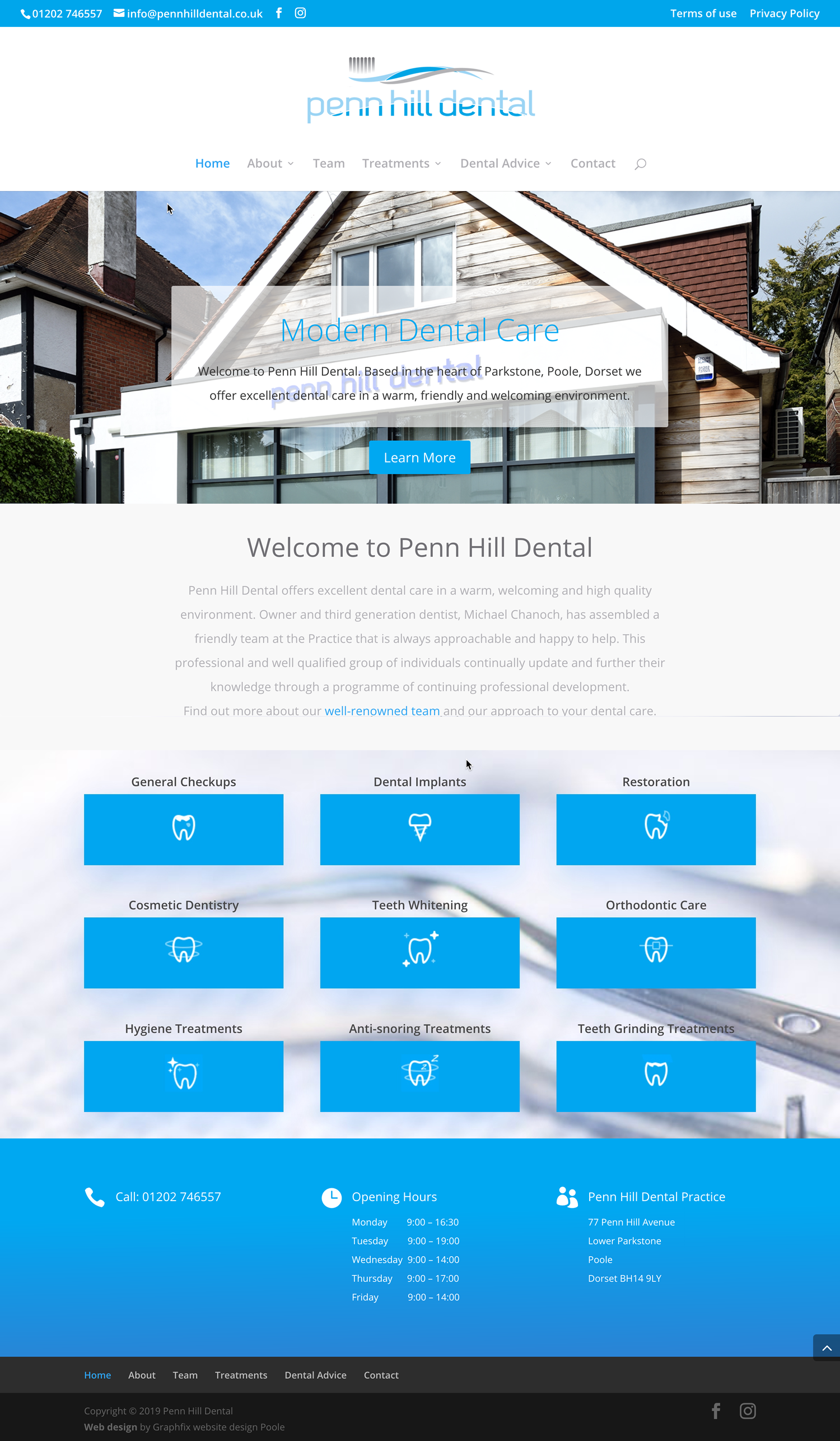 The team at Penn Hill Dental based in Parkstone, Poole needed to have their website updated as they felt that some of the content had over time become outdated and also the site needed to be made responsive. The team had also updated so the website was showing outdated information. So a new photo shoot was needed to reflect the updates. The site was required to showcase the team, their skills and the dental surgery itself. A photoshoot was arranged with a locally based photgrapher called Lindsey Harris. Once this was completed a new website was build using the new photography.